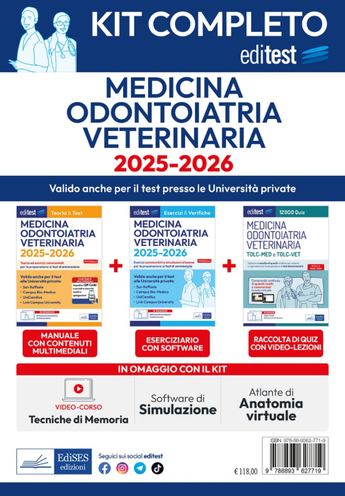 Il Kit Completo per la preparazione ai test di ammissione ai corsi di laurea in Medicina, Odontoiatria e Veterinaria 2025/2026 anche presso le Università private contiene: