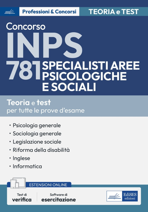 Il manuale contiene tutte le materie necessarie per prepararsi al concorso per l'assunzione a tempo indeterminato di 781 unità di Specialisti delle aree Psicologiche e Sociali da inquadrare nell'Area dei funzionari, famiglia professionale sanitari, nei ruoli del personale dell'INPS.