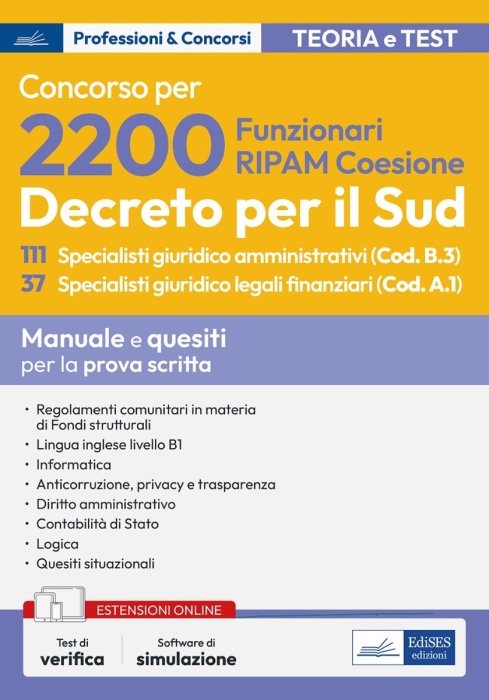 Manuale completo per la prova scritta del Concorso RIPAM per complessivi 2200 Funzionari di cui 111 unità con il profilo di specialista giuridico amministrativo per Regioni, Città metropolitane ed Enti locali e 37 unità con il profilo di specialista giuridico legale finanziario da destinare al Dipartimento per le politiche di coesione e per il Sud della Presidenza del Consiglio dei ministri.