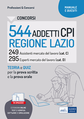 Il volume per la preparazione al concorso indetto dalla Regione Lazio per l’assunzione di complessive 544 unità da destinare ai Centri per l’Impiego (249 Assistenti mercato e servizi per il lavoro del lavoro, cat. C, e 295 Esperti mercato e servizi per il lavoro, cat. D) riporta una trattazione delle materie richieste per la prova scritta e il colloquio di entrambi i profili: