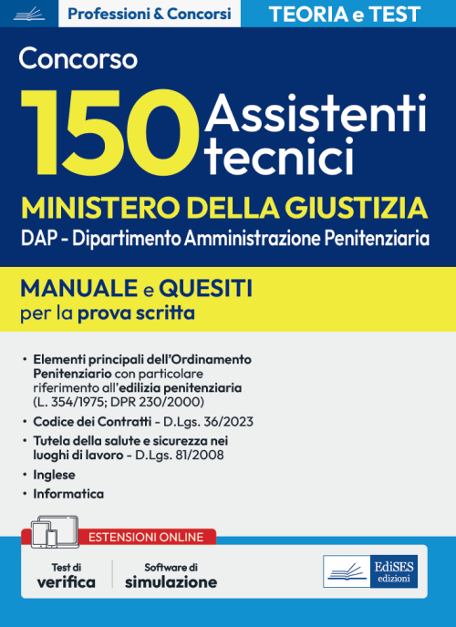 Manuale di teoria e test per la preparazione alla prova scritta del concorso per 150 Assistenti Tecnici presso il Dipartimento di Amministrazione Penitenziaria (DAP) del Ministero della Giustizia.