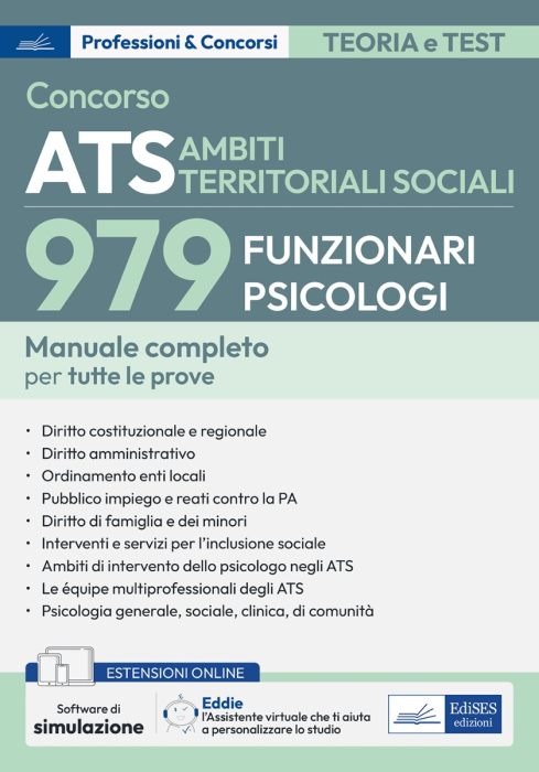 Manuale per la preparazione al Concorso per 979 Funzionari Psicologi (codici C.1, C.2 e C.3) presso gli ATS (Ambiti Territoriali Sociali). Il volume comprende tutte le materie oggetto delle prove concorsuali:
