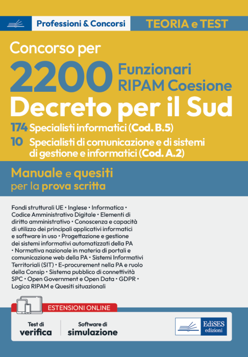 Manuale per la preparazione al concorso indetto dalla Commissione RIPAM per il reclutamento di 174 Specialisti Informatici digitali (Codice B.5) e 10 Specialisti di comunicazione e di sistemi di gestione e informatici (Codice A.2) nell’ambito della procedura per complessivi 2.200 posti (cosiddetto concorso Coesione Sud).