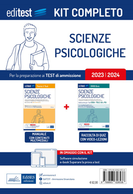 Il kit completo per la preparazione ai test di ammissione ai corsi di laurea in Scienze psicologiche, compresi TOLC-SU e TOLC-PSI, contiene: