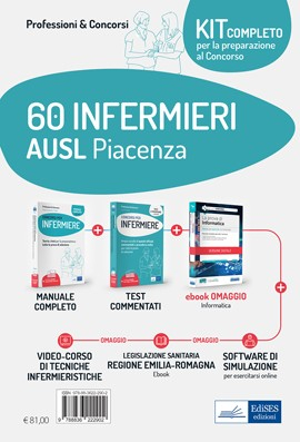 Il kit completo per la preparazione al concorso per 60 infermieri presso l'AUSL Piacenza (bando in GU concorsi n. 3 del 12-1-2021) è composto dai seguenti libri: