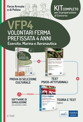 Il kit completo per la preparazione a tutte le prove dei concorsi per VFP4 Esercito, Marina e Aeronautica contiene i seguenti volumi: