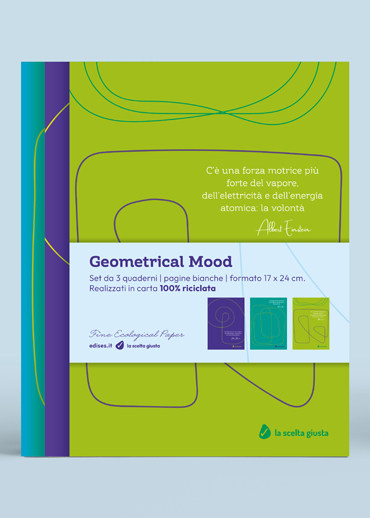 Il set di 3 quaderni Geometrical Mood, formato 17x24 cm, con copertina flessibile è un prodotto 100% eco-sostenibile grazie all'utilizzo della carta riciclata.