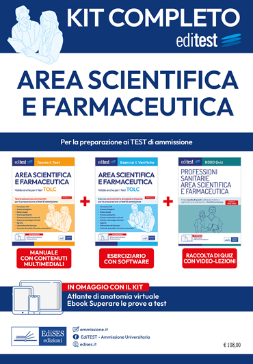 Il kit completo per la preparazione ai test di ammissione ai corsi di laurea di area scientifica e farmaceutica compresi i TOLC contiene: