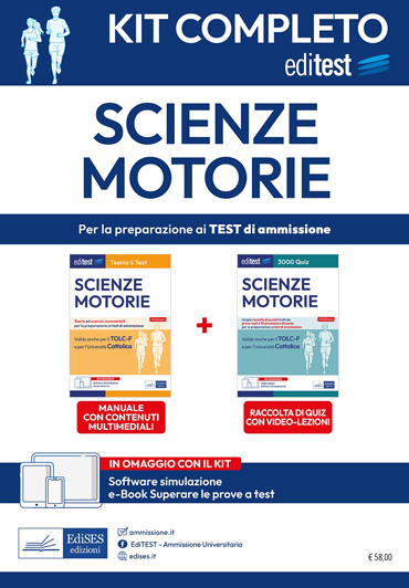 Il kit completo per la preparazione ai test di ammissione ai corsi di laurea in Scienze Motorie (compresi il test per l’Università Cattolica e il TOLC-F) contiene: