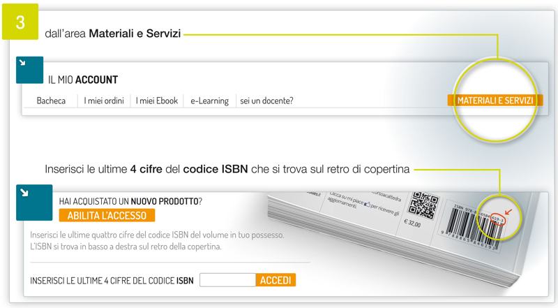 nell’area Materiali e Servizi inserisci le ultime 4 cifre del codice ISBN che si trova sul retro di copertina
